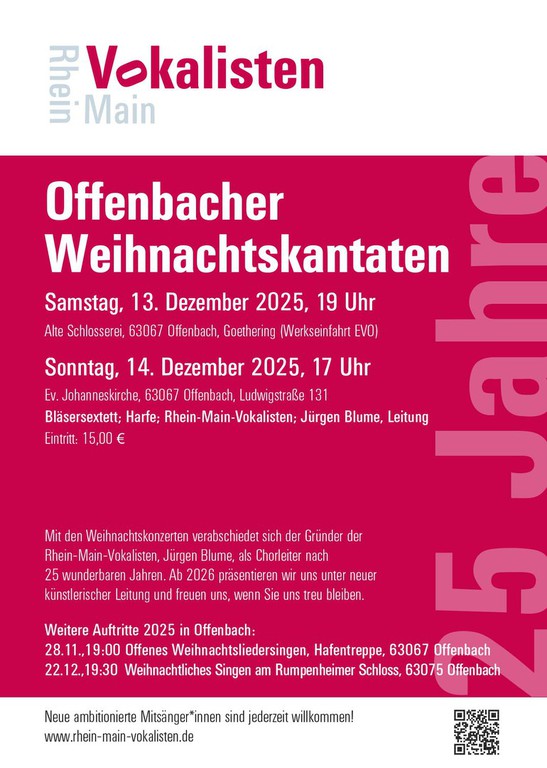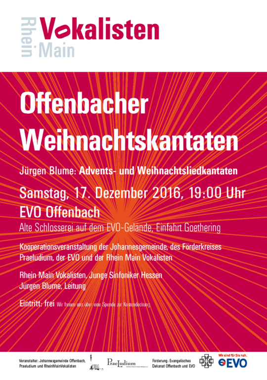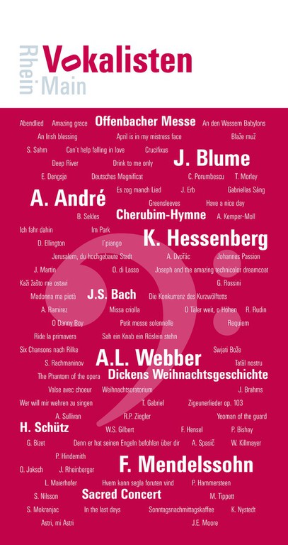 Für die RheinMainVokalisten Offenbach gestalten wir seit vielen Jahren unter anderem Plakate, CDs und Mailings. Die Konzerte sind professionell organisiert und sehr zu empfehlen. Jürgen Blume studiert mit dem preisgekrönten Chor auch eigene Kompositionen ein. Besuchen Sie die Webseite für aktuelle Informationen: www.rhein-main-vokalisten.de